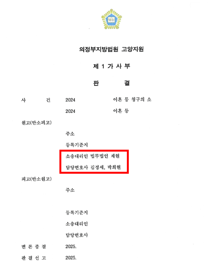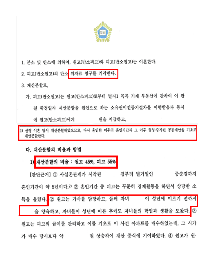 재판상이혼혼인 중 새로이 형성한 재산 분할 45% 방어 성공사례 2025-10-15 |