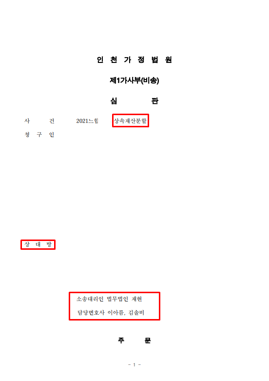 상속 상속재산분할심판청구 상대방의 주장을 모두 배척시킨 성공사례 2024-02-28 |